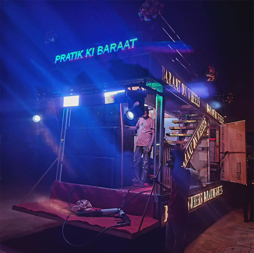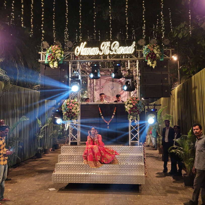 Gautam Event Pvt. Ltd. offers a vibrant and dynamic DJ on Wheels service in Mumbai, perfect for Baraat, Weddings, and major Festivals like Ganpati, Navratri, and Diwali. Our mobile DJ setup brings the party to your doorstep, ensuring your celebration is filled with high-energy music, amazing beats, and unforgettable moments. Whether you’re looking to energize your Baraat procession, add excitement to your wedding reception, or enhance the festive mood during holidays, our DJ on Wheels service is the perfect solution to elevate your event planning with fantastic sound and rhythm.