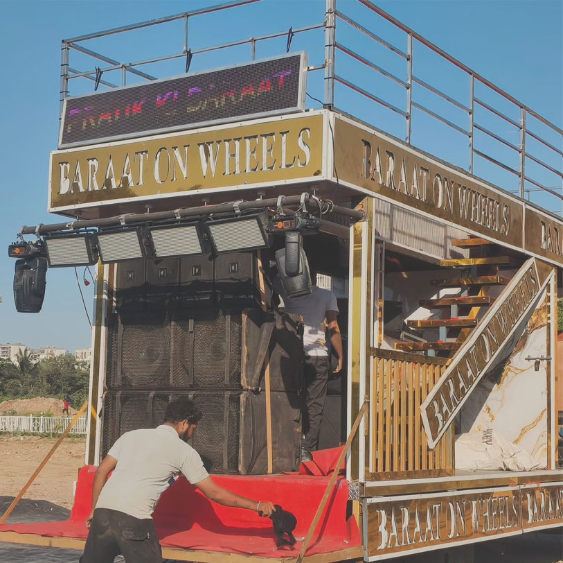 At Gautam Event Pvt. Ltd., we bring the party to life with our DJ on Wheels service in Mumbai, perfect for any celebration—be it a grand Baraat, an elegant wedding, or vibrant festivals like Ganpati, Navratri, and Diwali. Our DJ on Wheels service delivers high-energy music, superior sound systems, and a seamless experience, ensuring your event is filled with excitement and joy.
